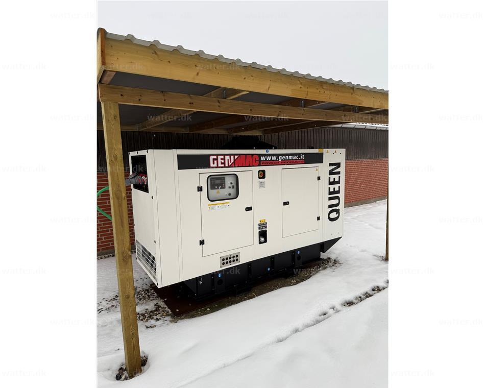 Generatoren, som er installeret hos kunden, er fra Genmac Queen-serien – et robust og driftssikkert anlæg, der er udviklet til professionelle løsninger, hvor stabil strømforsyning er afgørende.